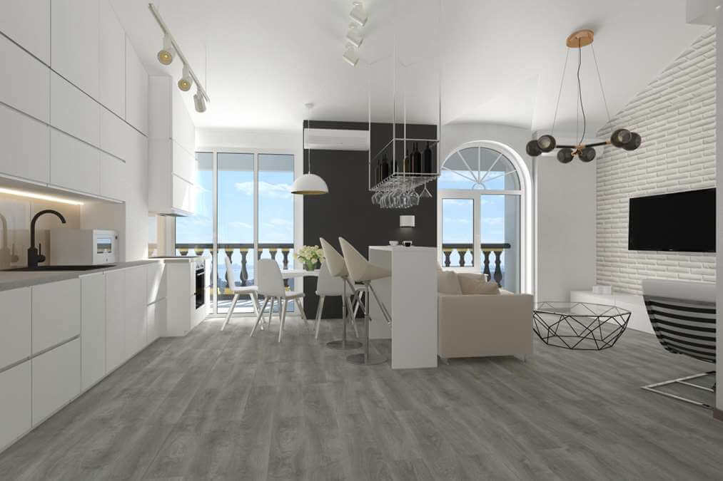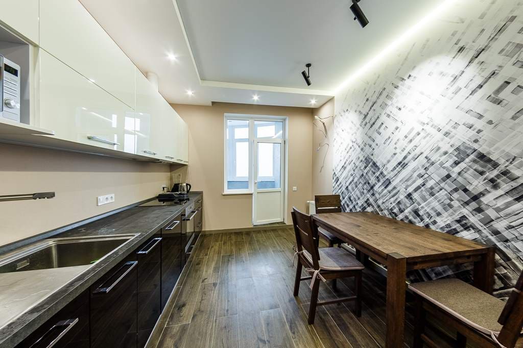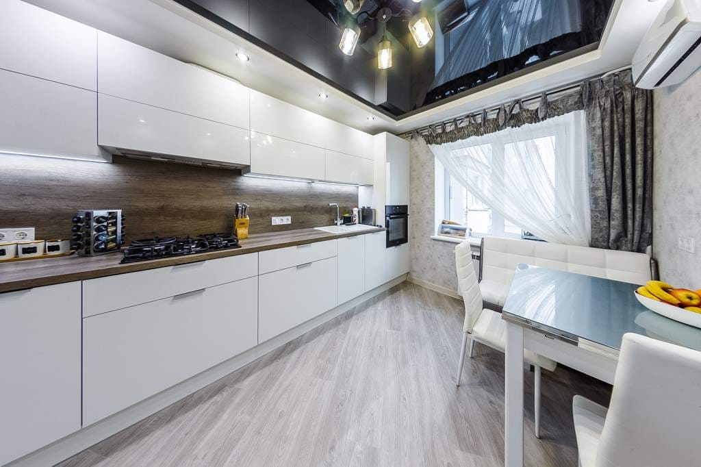 Используем керомогранит и инженерную доску, сделаем подвесные потолки.